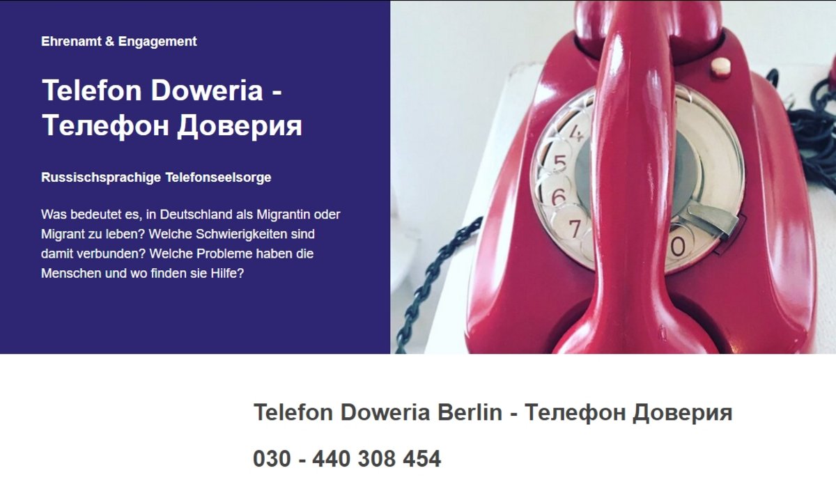- Russischsprachiges Seelsorgetelefon der TelefonSeelsorge Berlin. Menschen aus Russland und der Ukraine arbeiten dort zusammen. Tel. 030-440 308 454