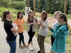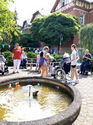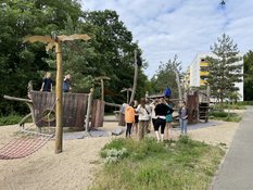 Gerade im Aufbruch waren die 14 Kids der 5d des Goethe, die ihre (ehemaligen) Lieblingsbücher den Kindergartenkindern vorgestellt und gemeinsam mit ihnen im neugestalteten Garten der Kita Sonnenhügel gespielt hatten. Die Aktion war ein großer Erfolg - alle hatten mächtig Spaß. Auf die Frage: „Wollt ihr das nochmal machen?“ kam ein begeistertes vielstimmiges „Jaaaaaa!“. Na dann…