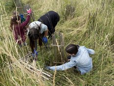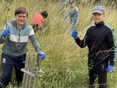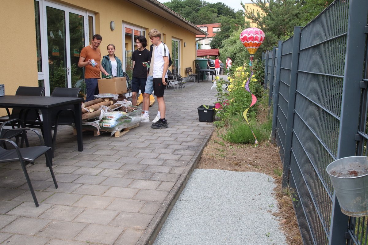 Am Freiwilligentag wurde aber auch ganz praktisch gearbeitet: So halfen Achtklässler beim Anlegen eines Barfußpfads im Außenbereich der Werkstatt für Menschen mit Behinderung des Lebenshilfe-Werks Weimar/Apolda in Tröbsdorf. Koordinator Daniel Elste freute sich über „vier helfende Hände mehr“.