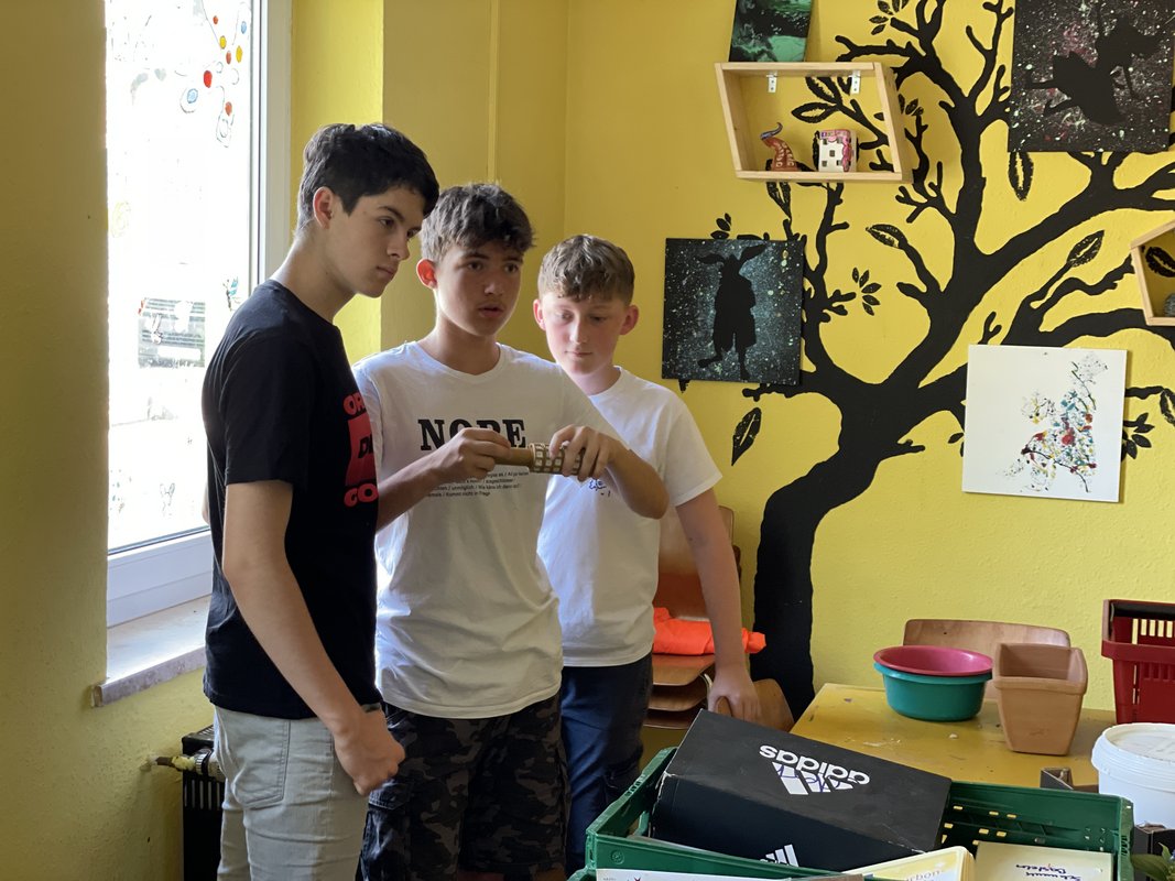 Im Jugendclub Kramixxo&Waggong war Aufräum- und Putzzeit. Bastelmaterial und Spielzeug wurde von zwölf 8-Klässlern des Schiller ausgemistet und neu sortiert, Fenster wurden geputzt und die Spinnweben mussten ebenfalls dran glauben. Arbeiten mit Musik macht unbestritten mehr Spaß – von Helene Fischer bis zum Ukrainischen Metalcore - in jedem Raum lief eine andere Playlist.