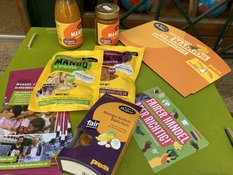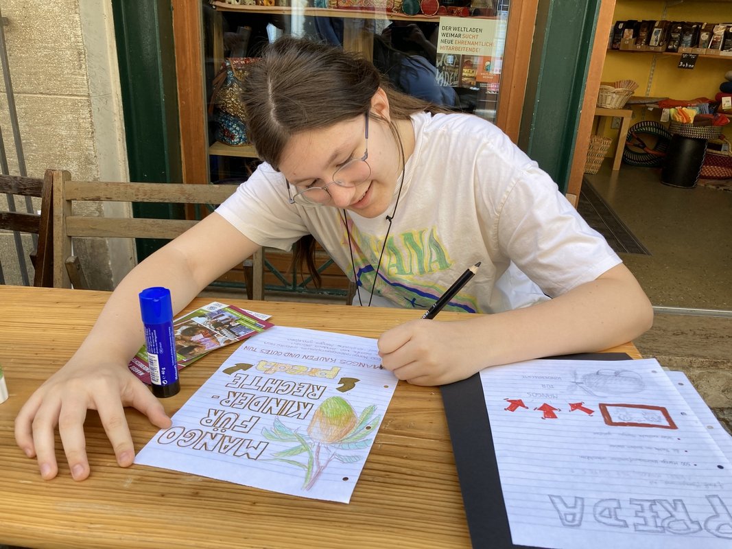 Im Weltladen in der Windischenstraße bastelten vier Schülerinnen an einem großen Plakat für das Mango-Projekt, erhielten Einblicke in das Thema Fairer Handel und erfuhren dadurch viel über die so vertriebenen Produkte.