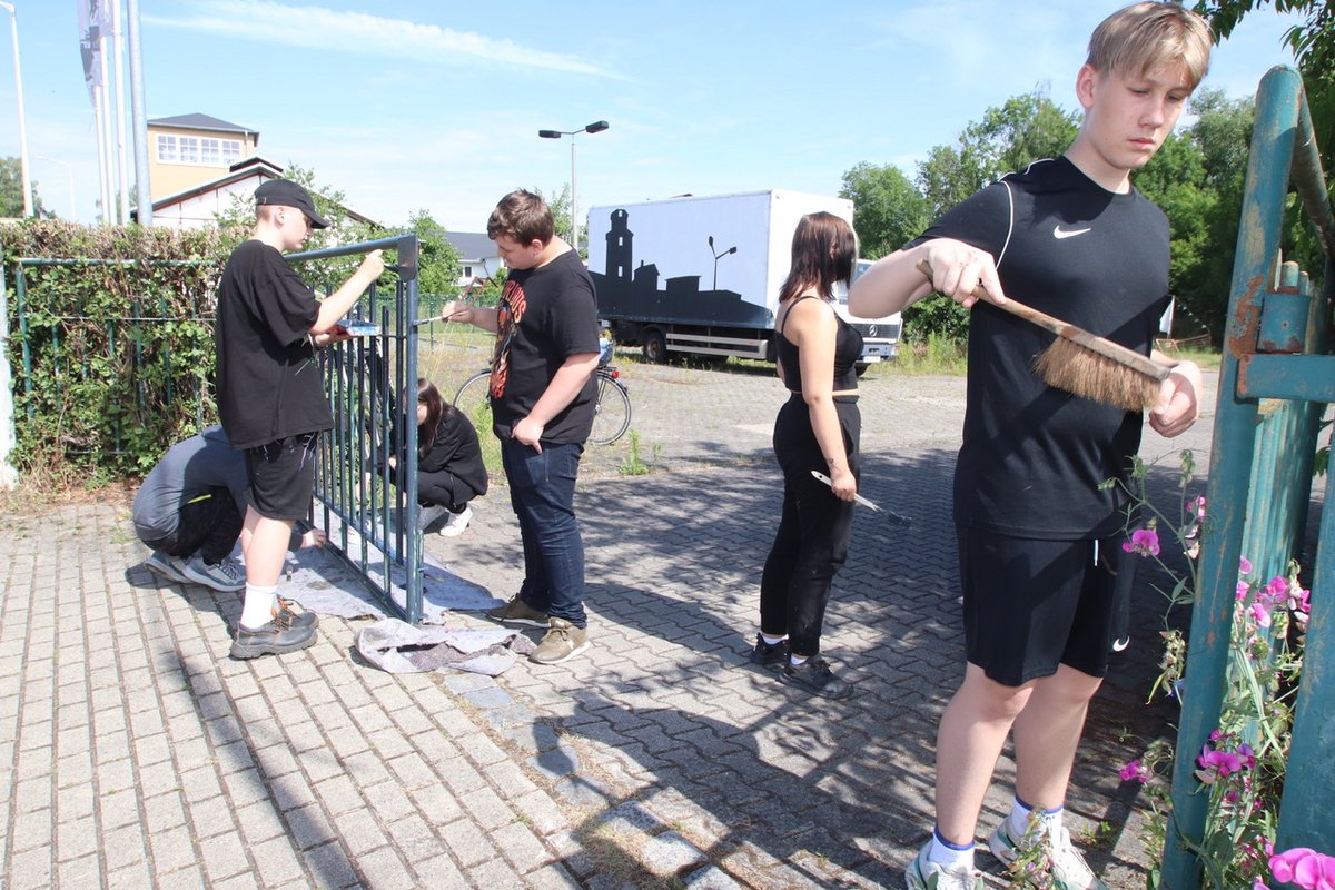 Wenn die Tore zum Gelände des Studio Mosaik im alten Gaswerk an der Schwanseestraße jetzt neu gestrichen sind, dann ist das 12 Schülerinnen und Schülern der Praxisklasse an der Thüringer Gesamtschule „Carl Zeiss“ in Weimar zu danken. „Für die Gesellschaft Gutes tun“, stehe für die Praxisklasse obenan, erläuterte Schulsozialarbeiterin Romy Gaida.