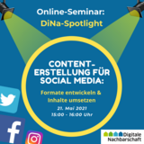 Neue Online-Seminarreihe „DiNa-Spotlight“. Start mit „Content-Erstellung für Social Media“ am 21. Mai.
