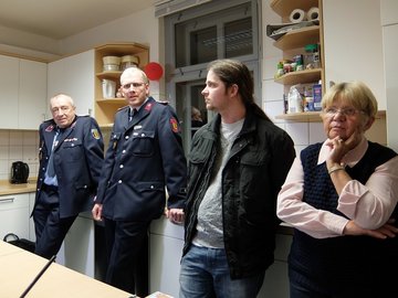 Den Abschluss machen die Männer in Uniform. Frank Luge und Michael Höhn sind Feuer und Flamme für die Freiwillige Feuerwehr und brauchen Menschen, die ebenfalls für das Thema Feuerwehr und Gefahrenabwehr „brennen“. Das heißt, jeder der geistig und körperlich fit ist und sich sprachlich gut verständigen kann, ist eingeladen, einer der 7 Ortswehren der Stadt Weimar beizutreten. Man legt einen medizinischen Test ab und absolviert dann eine Grundausbildung an 4 Wochenenden. Teamgeist ist gefragt. Auch Kinder und Jugendliche sind als Mitstreiter für die Jugendfeuerwehren willkommen. Diese freiwillige Betätigung ist mit einigen Pflichten verbunden, das ist nach dem Vortrag der Männer allen Anwesenden klar.