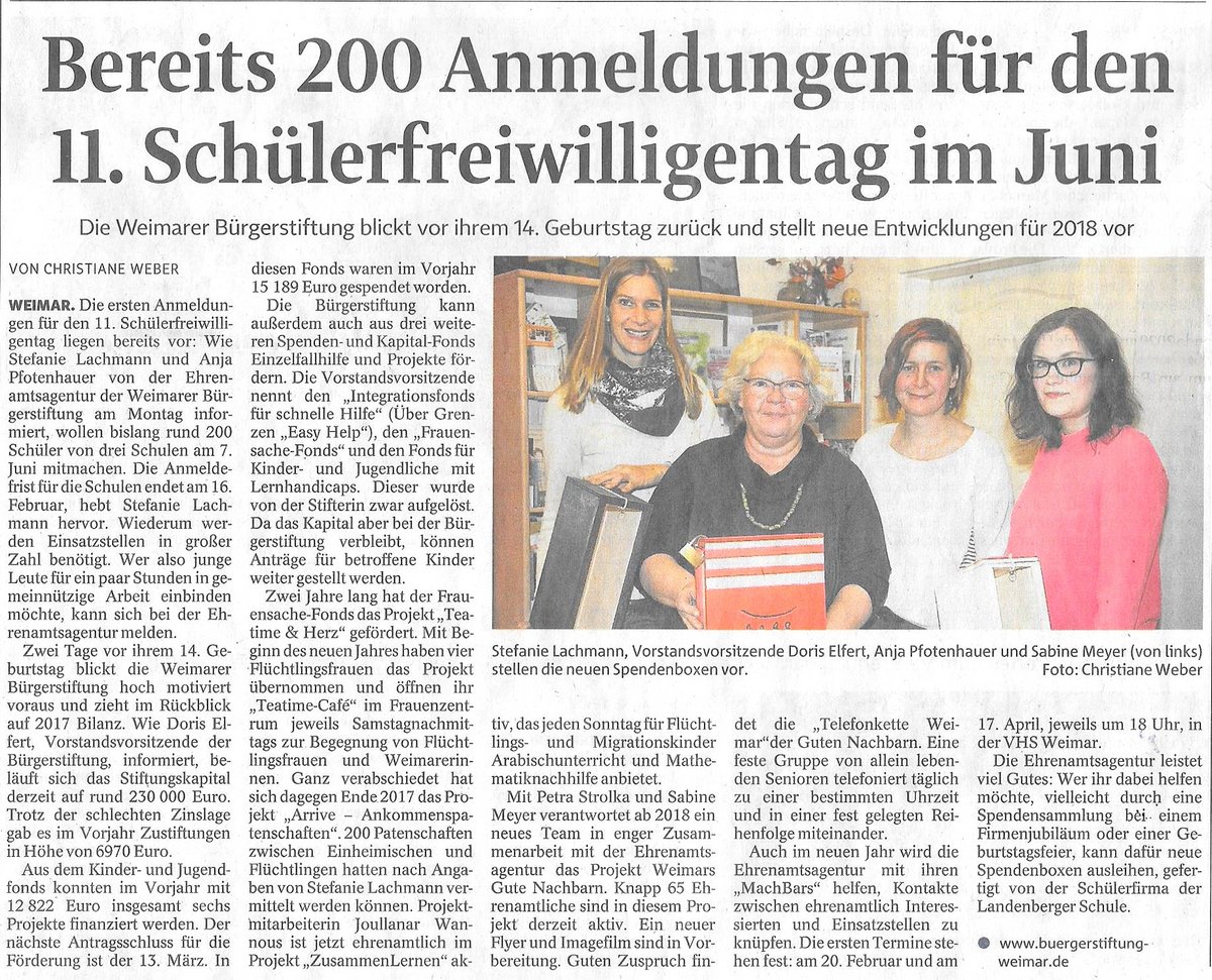 Die Weimarer Bürgerstiftung blickt vor ihrem 14. Geburtstag zurück und stellt neue Entwicklungen für 2018 vor.