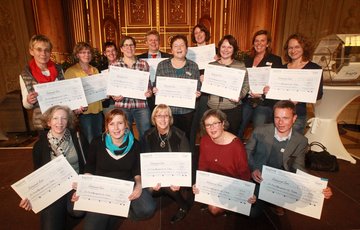 Die Preisträger 2014 - Anja Pfotenhauer (unten, 2. v.l.) nahm den symbolischen Scheck entgegen.