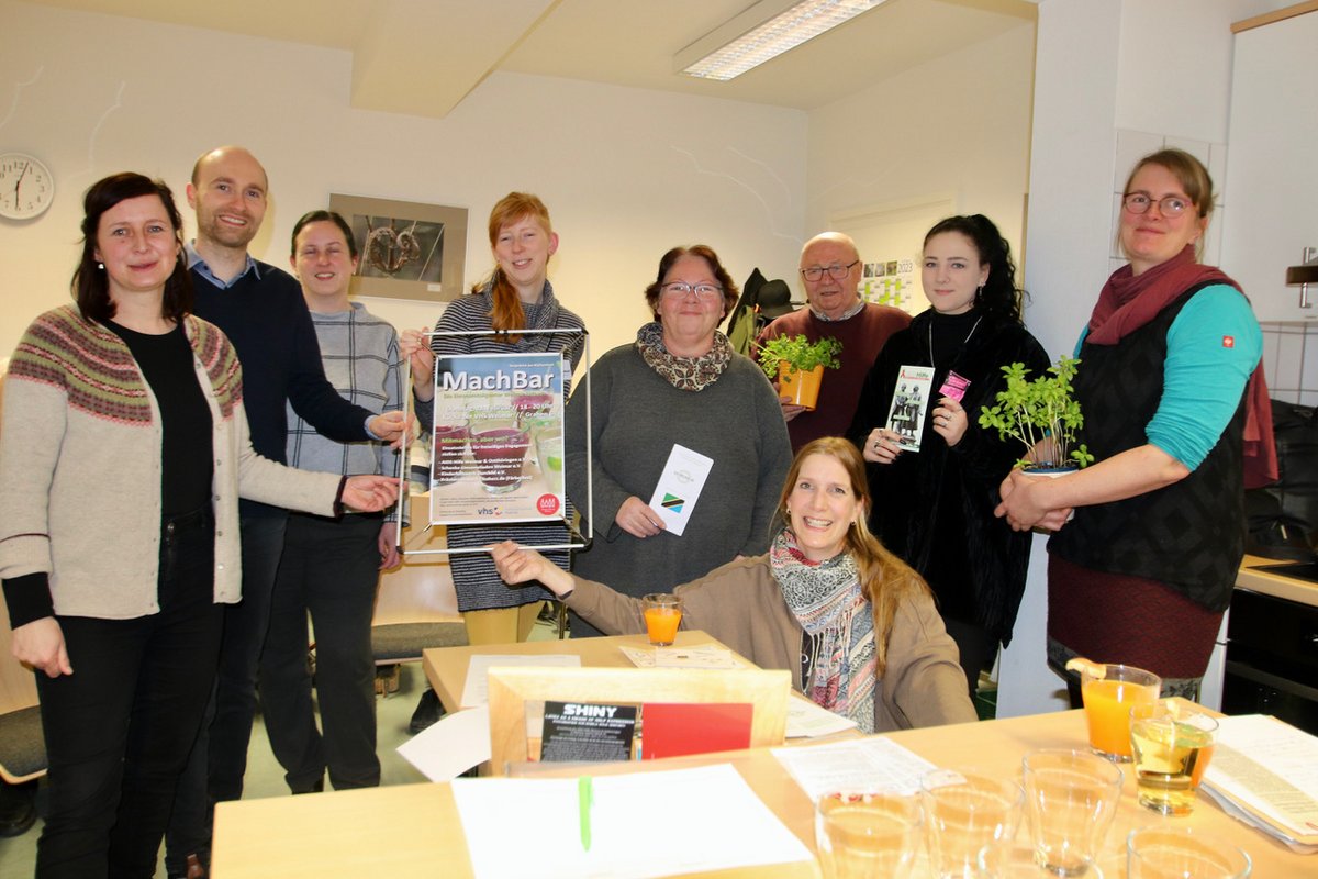 Wenn in diesem Jahr Anfang Mai in Neckeroda erstmals „Kräutertage“ stattfinden, werden viele ehrenamtliche Helferinnen und Helfer im Einsatz sein. Für eine Mitwirkung bei der Veranstaltung im Färbedorf warben am Dienstagabend Christiane Thiele und Ullrich Franz vom Thüringer Kräuternetzwerk bei der jüngsten MachBar der Ehrenamtsagentur der Weimarer Bürgerstiftung. Insgesamt vier Vereinen wurde im gastfreundlichen Rahmen der VHS-Küche ein Podium geboten: Stefanie Lachmann und Anja Pfotenhauer-Wolleschensky begrüßten außerdem Vertreterinnen und Vertreter der AidsHilfe Weimar & Ostthüringen, des Schenke-Umsonstladen e.V. und des Kinderhilfswerks Ourchild. Sie alle hoffen auf Unterstützung und helfende Hände.