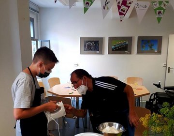 Von Dienstag bis Freitag trafen acht Teilnehmende aufeinander und brachten zusammen mit der Ernährungstherapeutin Miriam Maier die Küche zum Kochen. Gekocht wurde wie immer in Mehrgenerationenteams. Der elfjährige Michel ist mit seiner Oma da und freut sich, dass die Milch, mit der heute einen Dinkelgrießbrei kocht, von den Kühen aus seinem Heimatdorf stammt. Der zwölfjährige Filip ist in einem Team mit Dietmar. Von dem 72-Jährigen gibt es viel zu lernen, da er selbst für viele Jahre in der Küche gearbeitet hat. Und so gibt’s von ihm auch viele nützliche Tipps und Tricks, zum Beispiel wie man eine Zwiebel schneidet, ohne dass dabei Tränen fließen und auch wie der Eierkuchenteig ohne Klümpchen gelingt.