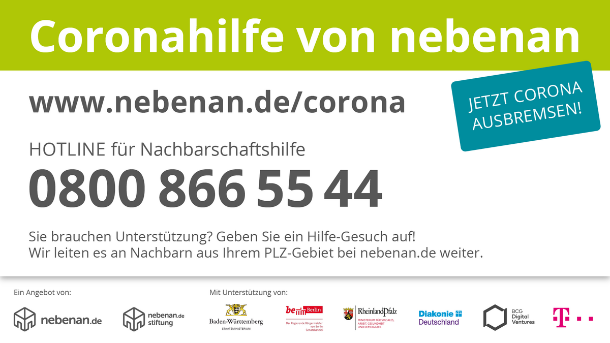Wir möchten hier noch einmal auf das Angebot der nebenan.de Stiftung aufmerksam machen.
