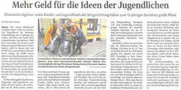 EhrenamtsAgentur sowie Kinder- und Jugendfonds der Bürgerstiftung haben zum 15-jährigen Bestehen große Pläne