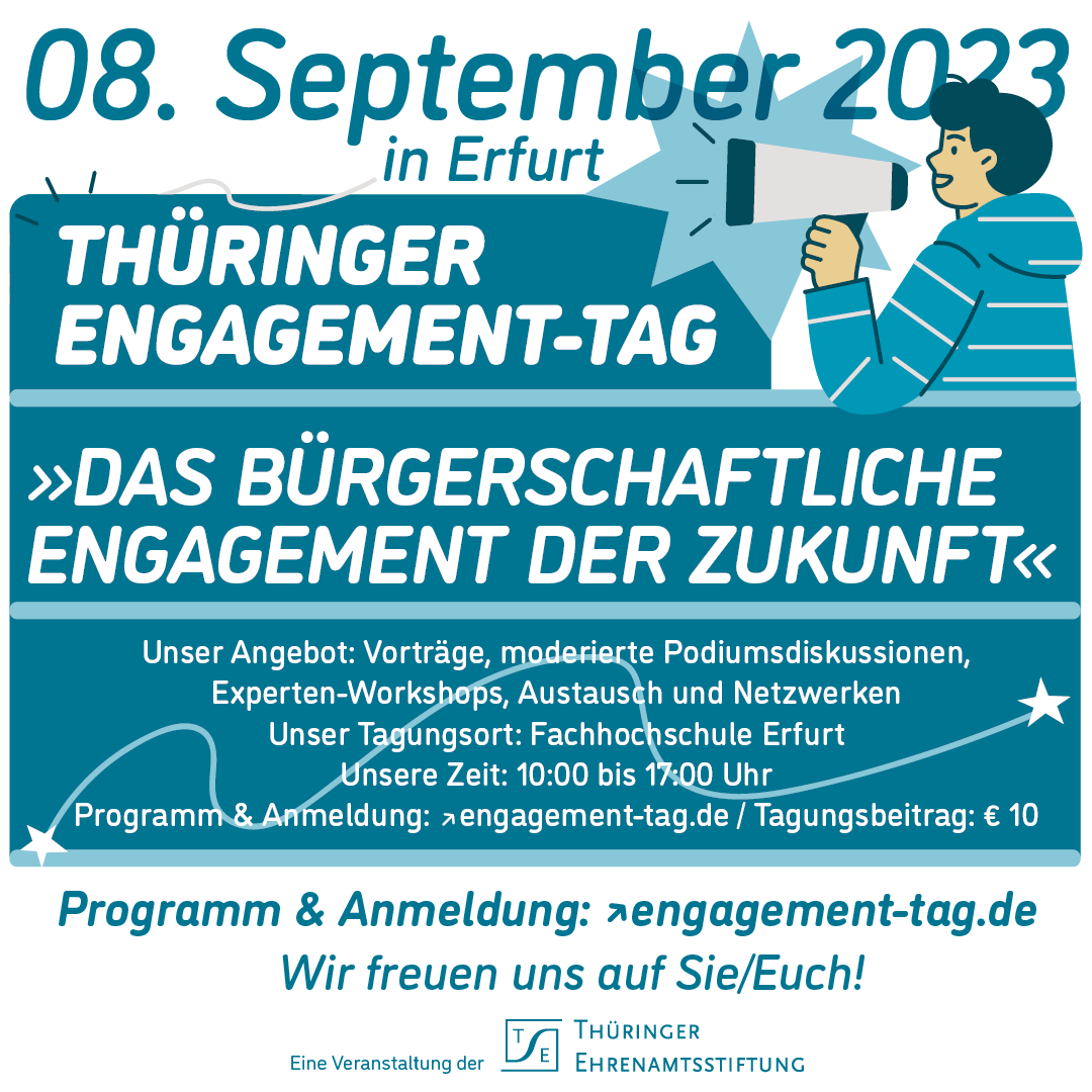Eingeladen zum Engagement-Tag sind Menschen, die sich in Thüringen freiwillig engagieren, Engagement organisieren und mit Ehrenamtlichen arbeiten sowie Mitarbeiterinnen von Stiftungen. Die Begrüßung mit anschließendem Vortrag sowie die Podiumsdiskussionen werden in Gebärdensprache übersetzt.