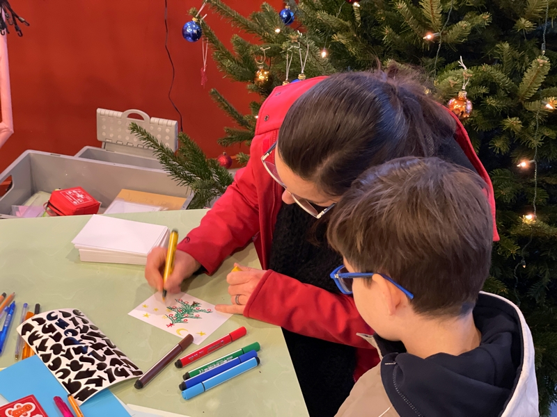 Das Wetter war auch viel zu ungemütlich für die ursprünglich geplante Outdoor-Aktion und so konnten große und kleine Kartenschreiber im Trockenen ihre Weihnachtsgrüße für die Wichtelpost verfassen.