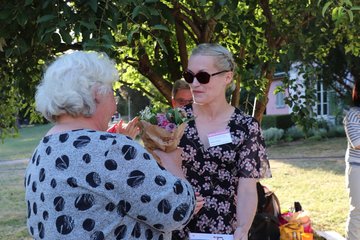 „Eure Unterstützung ist nicht mit Gold aufzuwiegen“, betonte Sabine Meyer und versuchte es deshalb mal mit Zeit: Bei einem Besuch von rund 2,5 Stunden in der Woche komme jede(r) Ehrenamtliche auf 130 Stunden im Jahr. Das wären allein für die 30 anwesenden Ehrenamtlichen im Jahr zusammen stattliche 3900 Stunden, ohne die vielen kleinen und großen Telefonate oder Besorgungen: „Zeit ist das größte Geschenk", unterstrich Sabine Meyer in ihrer Rede. Und genau darum geht es in dem Projekt: Zeit zu haben - für Gespräche, Besorgungen, Spaziergänge, Begleitung zum Arzt, gemeinsame Theater- oder Konzertbesuche. Doch auch bei einer Reise in die alte Heimat nach Tschechien mit Besichtigung des verlassenen Elternhauses oder bei Verlegung eines Teppichs waren die „Guten Nachbarn“ verlässlich an der Seite „ihrer“ Senioren.